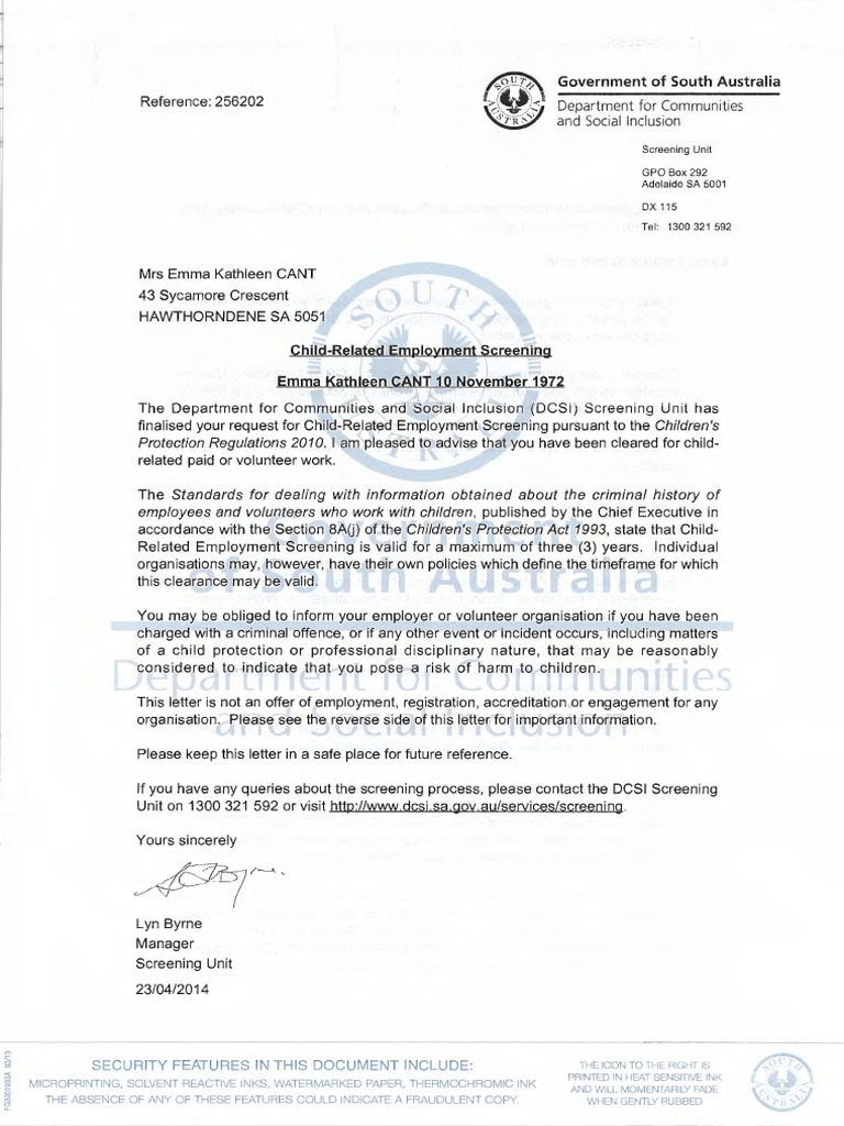 Www dcsiscreening sa gov au. This email will tell you to change your password. The dhs screening unit provides background screening services to many organisations. The screening unit uses an individual s name previous names date of birth and residential information to get a national criminal history record from the australian criminal intelligence commission acic and to check the south australian child protection database. Working with children check.